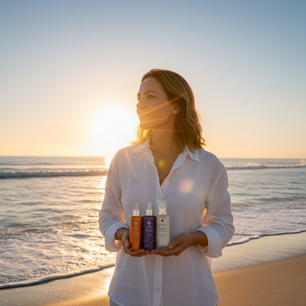 Siero Vit C+: Aloe barbadensis leaf juice, Aqua, Sodium ascorbyl phosphate, Glycerin, Citrus aurantium amara flower water, Hydrolyzed hyaluronic acid, Tetrahydrodiferuloylmethane, Alteromonas ferment extract, Taraxacum officinale rhizome/root extract, Ferulic acid, Sodium hyaluronate, Tocopheryl acetate, Centella asiatica extract, Simmondsia chinensis oil, Arginine, Xanthan gum, Hamamelis virginiana leaf extract, Benzyl alcohol, Citrus aurantium dulcis peel oil, Polyglyceryl-4 caprate, Phytic acid, Ethylhexylglycerin, Limonene, Phenethyl alcohol, Potassium sorbate. *ingrediente proveniente da agricoltura biologica / Crema al Collagene: Aqua, Dicaprylyl carbonate, Glycerin, Isopropyl myristate, Propanediol, Polyglyceryl-2 stearate, Aloe barbadensis leaf juice (*), Caprylic/capric triglyceride, Glyceryl stearate, Simmondsia chinensis seed oil, Stearyl alcohol, Heptyl undecylenate, Stearic acid, Benzyl alcohol, Butyrospermum parkii butter, Oryza sativa starch, Arginine/lysine polypeptide, Xanthan gum, Lecithin, Parfum, Pogostemon cablin leaf oil, Tetrasodium glutamate diacetate, Tocopherol, Ethylhexylglycerin, Hydrolyzed collagen, Hydrolyzed hyaluronic acid, Persea gratissima oil (*), Ascorbyl palmitate, Chamomilla recutita flower extract (*), Retinol, Citric acid, Sorbic acid, Sodium benzoate, Potassium sorbate./ Siero Retinolo: Aqua, Propanediol, Glycerin, Cetearyl olivate, Sorbitan olivate, Camelina sativa seed oil, Dicaprylyl carbonate, Olea europaea oil unsaponifiables, Olea europaea fruit oil, Hydrogenated olive oil, Olea europaea fruit extract (), Hydrolyzed glycosaminoglycans, Juglans regia leaf extract (), Acetyl tetrapeptide-2, Betaine, Benzyl alcohol, Tocopherol, Xanthan gum, Caprylic/capric triglyceride, Tetrasodium glutamate diacetate, Parfum, Ethylhexylglycerin, Lecithin, Retinol, Linalool, Citric acid, Linalyl acetate, Hyaluronic acid, Tetramethyl acetyloctahydronaphthalenes, Citrus aurantium peel oil, Limonene, Ascorbyl palmitate, Caprylyl glycol, Alpha-isomethyl ionone, Sodium benzoate, Citronellol, Potassium sorbate. (*) Ingredients from organic agriculture.